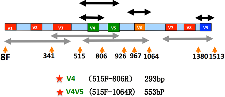 根据研究需求选取不同区域作为多样性分析扩增引物。